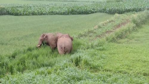 最终,在一片树林里,村民们成功地将大象围住。他们纷纷拿出手机,记录下这一幕。而那只大象似乎也意识到了自己的错误,它低下了头,似乎在向村民们道歉。